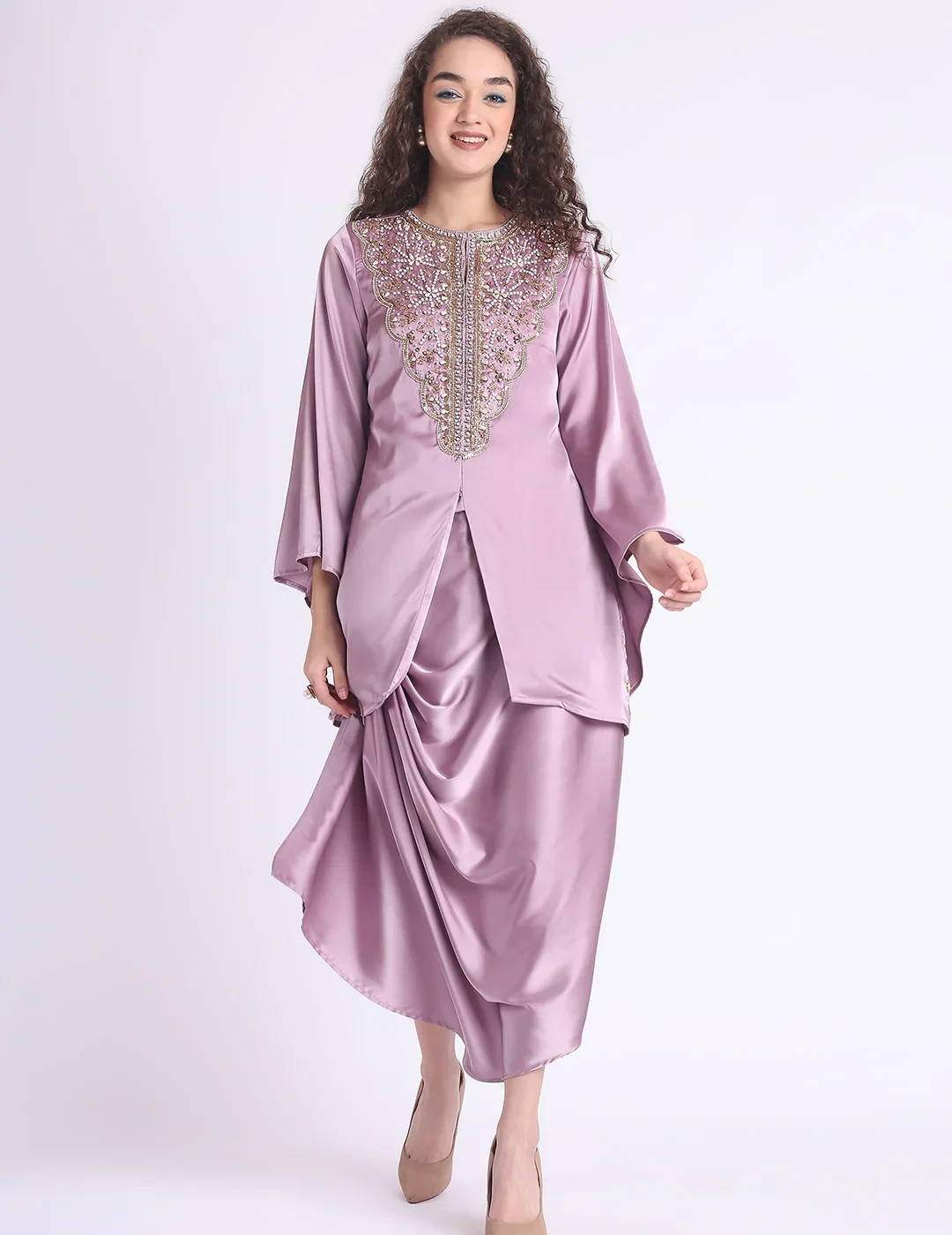 Elevate your wardrobe with the timeless elegance of the Yami Embroidered Co-ord Set by Chique. Crafted in luxurious Satin Lycra (100% polyester), this blush-toned ensemble blends artisanal craftsmanship with contemporary flair. The top features delicate embroidery that adds a touch of sophistication, while the tailored bottoms ensure all-day comfort and style.