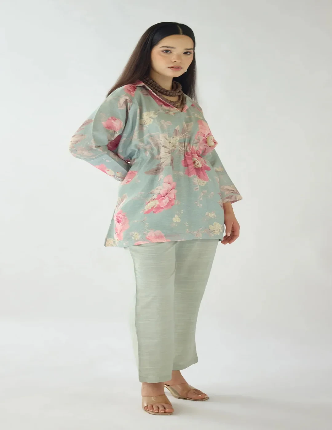 The Green Dust Light Petals Linen Blend Co-ord Set embodies effortless elegance. Soft linen blend fabric drapes beautifully, while the delicate green hue evokes a sense of serenity. Perfect for a relaxed, stylish look that's ideal for warm days and casual gatherings.
