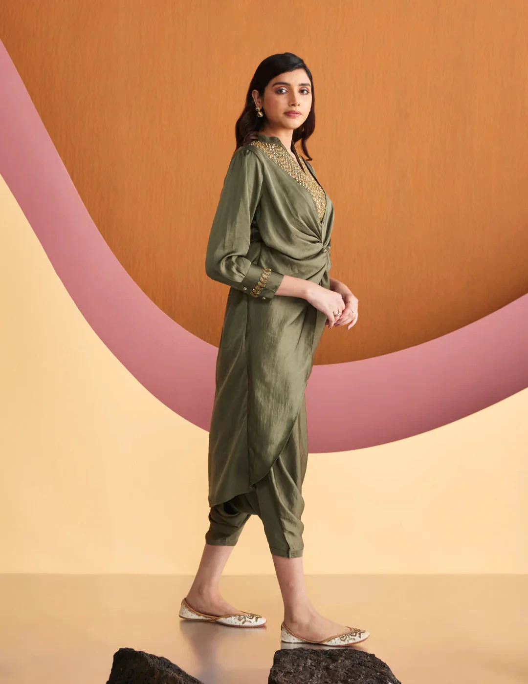 Draped in satin allure, embrace exquisite craftmanship in this stunning embroidered co-ord set from the house of CHIQUE.