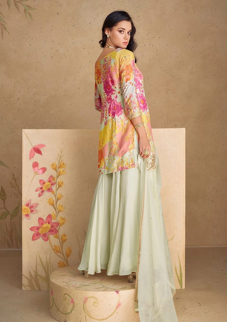 White Sequin Embroidered Chinon Silk Palazzo Set - XKS05280