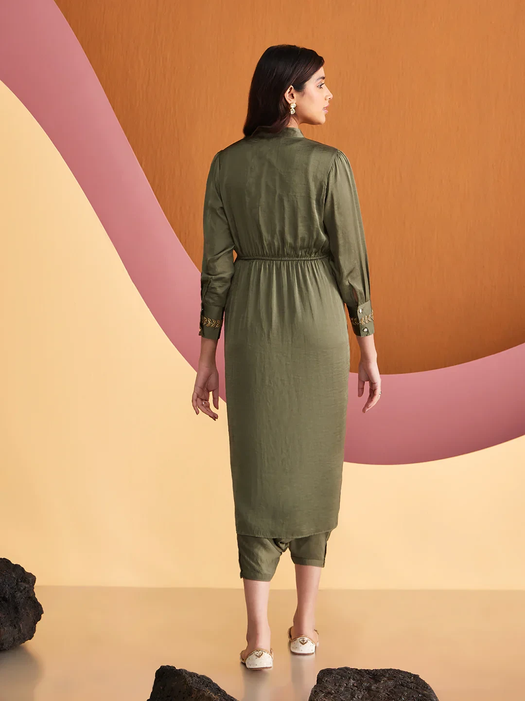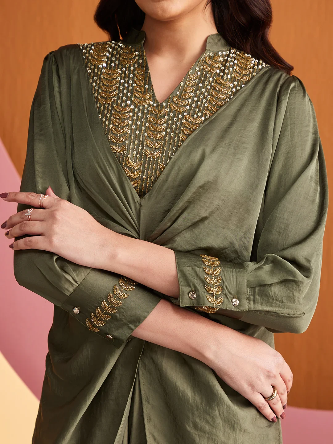 Draped in satin allure, embrace exquisite craftmanship in this stunning embroidered co-ord set from the house of CHIQUE.