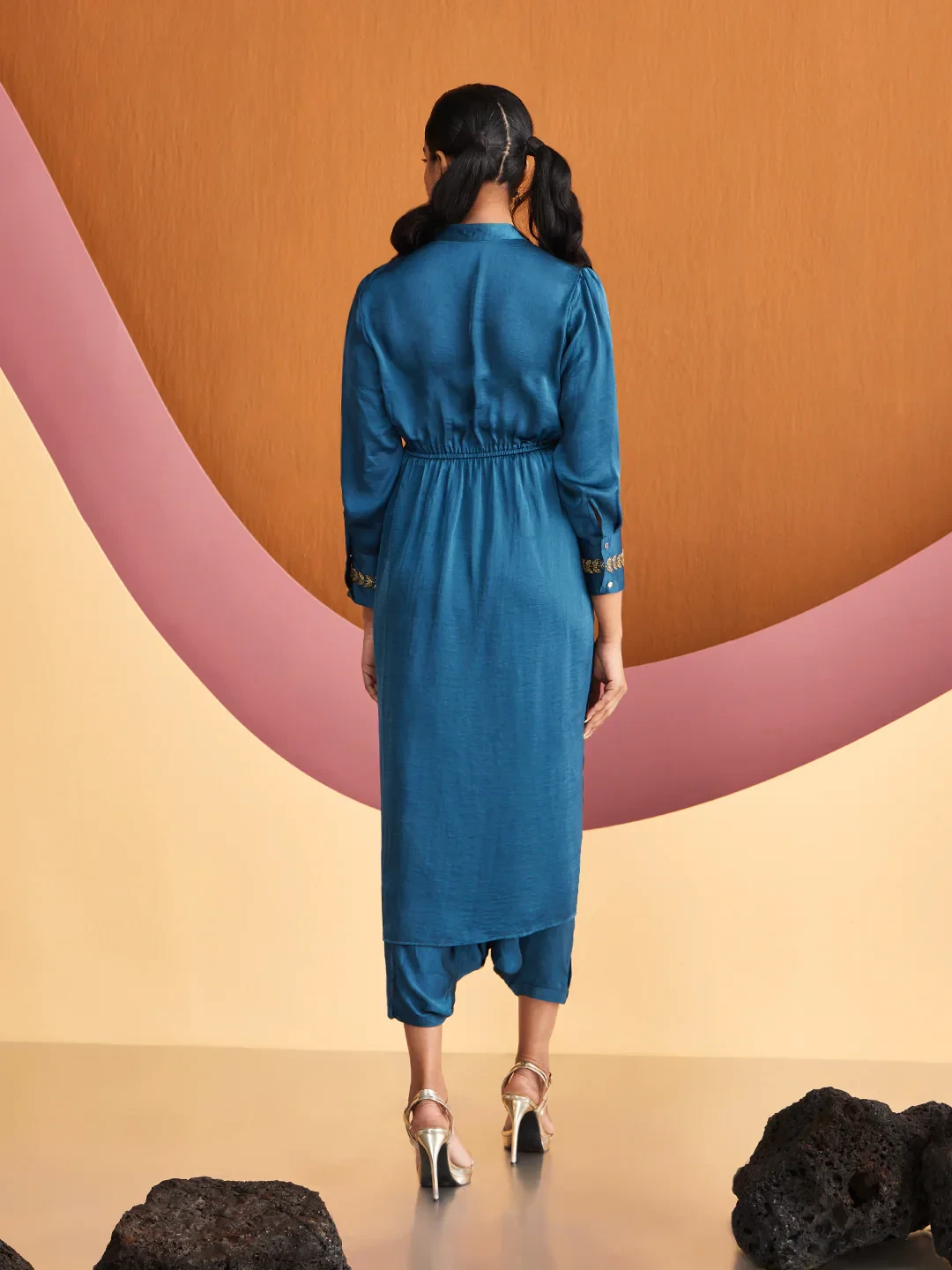 Draped in satin allure, embrace exquisite craftmanship in this stunning embroidered co-Ord set from the house of CHIQUE.